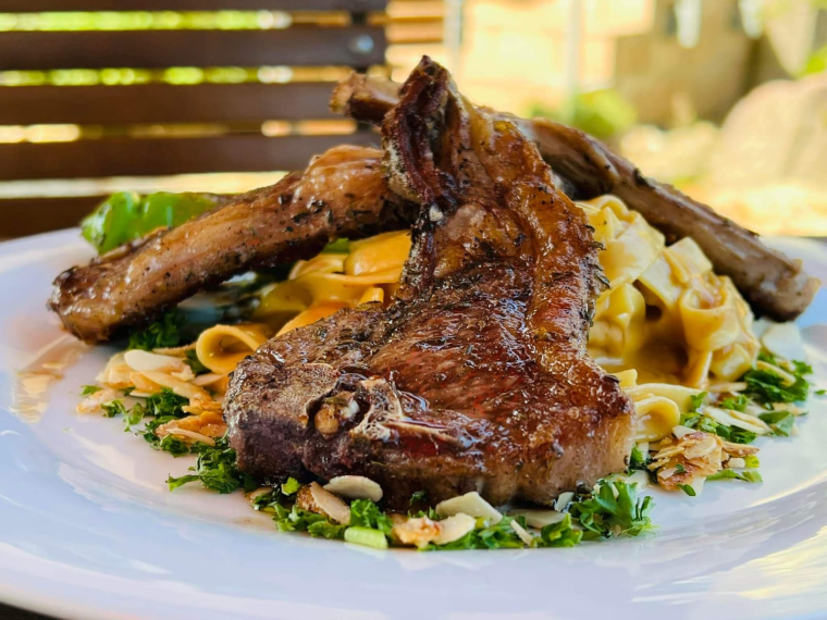 Gegrillte marinierte Lammkoteletts4 Stück mit Knoblauchdip
