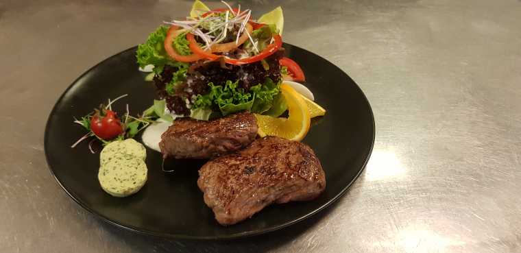 Beef SalatSaftiges argentinisches Rinderhüftsteak mit Kräuterbutter, an knackigem Salat