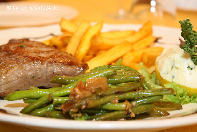 Rumpsteak mit Zwiebeln und Kräuterbutter | 25,90 € |
