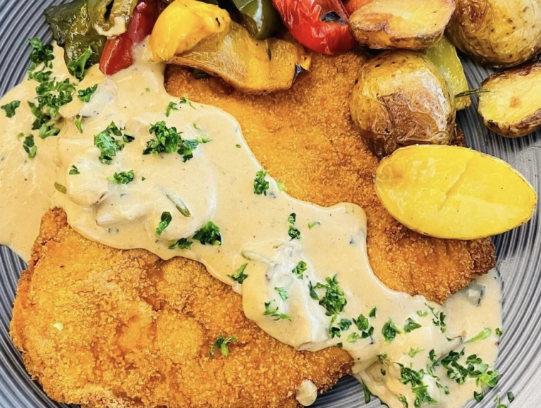 Scaloppina Parmigianamit Tomatensoße und Käse überbacken