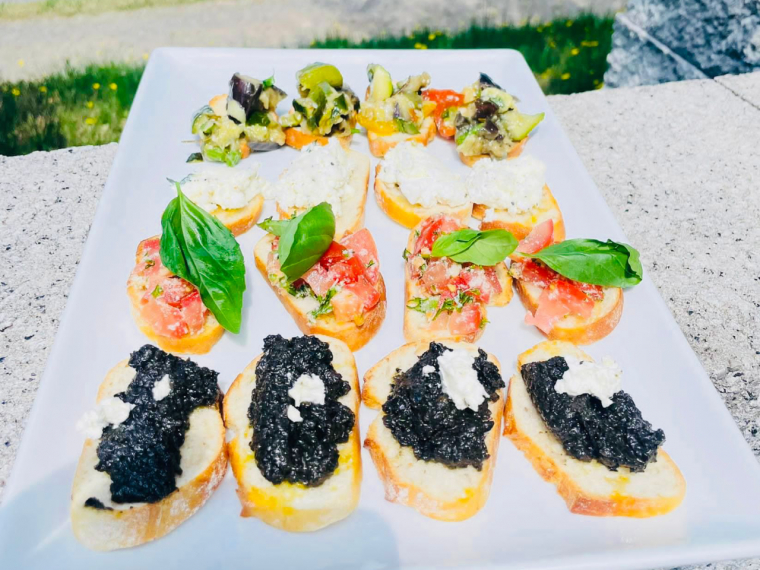 Bruschettakrosses Brot mit frischen Tomaten und Knoblauch