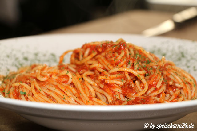 Spaghetti Bolognese al Fornomit Hackfleischsauce und Käse überbacken